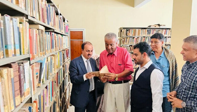 وخلال الزيارة التي استقبله فيها رئيس الهيئة العامة للكتاب يحيى الثلايا ونائبه المكلّف عبدالعزيز بن بريك، ومدير عام فرع الهيئة بعدن جميل عثمان، تجول الوزير بالهيئة وأقسام المكتبة الوطنية وقاعات الكتب ومرافقها الإدارية وأطلع على ما تحتويه من إرث ثقافي وإنساني هام.