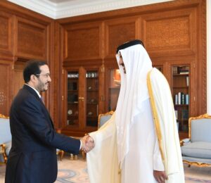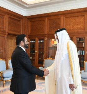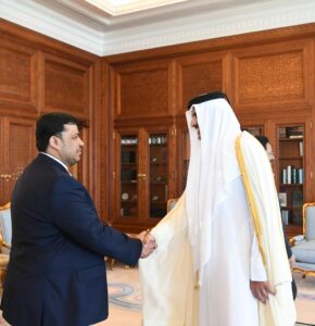 عقد فخامة الرئيس الدكتور رشاد العليمي، وأخيه صاحب السمو الشيخ تميم بن حمد آل ثاني أمير دولة قطر الشقيقة، اليوم الخميس، لقاءاً موسعاً، بحضور أعضاء مجلس القيادة الرئاسي، سلطان العرادة، والدكتور عبدالله العليمي، وعثمان مجلي، الذين يزورن الدوحة حالياً ضمن جولة رئاسية خارجية شملت الكويت، والبحرين ومصر.