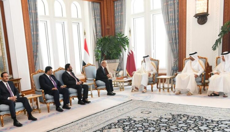 رئيس مجلس القيادة الرئاسي وأمير دولة قطر يعقدان لقاءاً موسعاً لتعزيز العلاقات بين البلدين