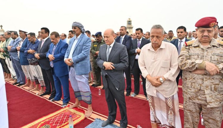 رئيس مجلس القيادة الرئاسي يؤدي صلاة العيد ويستقبل جموع المهنئين