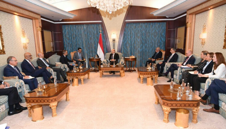 واستمع رئيس مجلس القيادة الرئاسي من السفراء الأوروبيين، إلى شرح حول جهودهم المنسقة مع الوسطاء الأمميين والدوليين من أجل تعزيز فرص السلام، وتخفيف المعاناة عن الشعب اليمني.