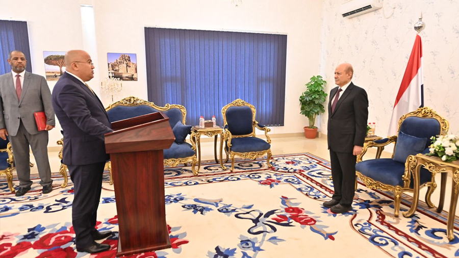وزير الأشغال وسفير اليمن لدى اليابان يؤديان اليمين الدستورية أمام رئيس مجلس القيادة الرئاسي