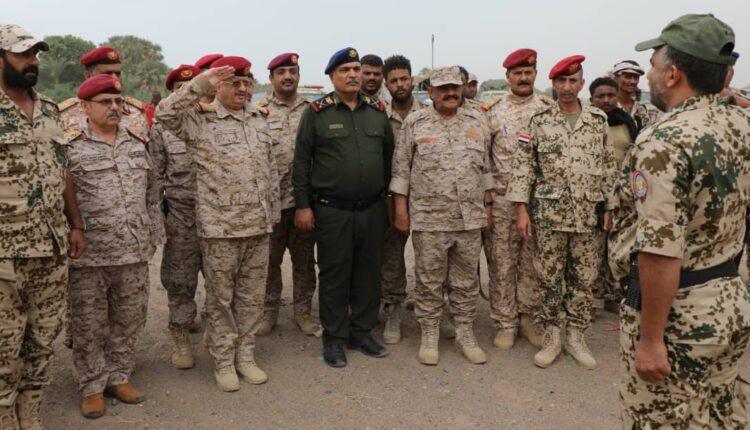 وخلال الزيارة التي رافقه فيها قائد المنطقة العسكرية الرابعة اللواء الركن فضل حسن، ورئيس هيئة الاستخبارات والاستطلاع اللواء الركن أحمد اليافعي، ونائب رئيس هيئة الإسناد اللوجستي اللواء الركن علي محسن الفضلي، ووكيل وزارة الداخلية اللواء الركن عبدالناصر صبيره، وكان في استقباله رئيس عمليات المقاومة الوطنية العميد الركن عبدالرحمن نعمان، وقائد محور حيس العميد الركن بهيجي الرمادي، استمع وزير الدفاع من قادة المحور والألوية والوحدات الفرعية إلى شرح حول سير العمليات على امتداد مسرح القتال.
